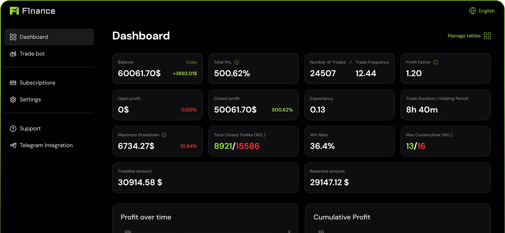 Track real-time performance with detailed analytics. Monitor profit, loss and key metrics to optimize your trading decisions.